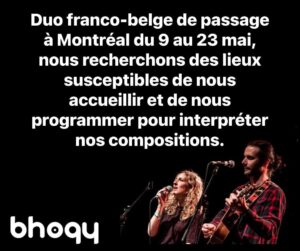 Nous serons de passage à Montréal du 9 au 24 mai 2026 et recherchons des lieux susceptibles de nous accueillir et de nous programmer pour présenter… Lire la suite : à Montréal du 9 au 24 mai 2026
